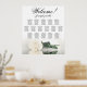 Cette carte moderne à mariages floraux dispose de 16 tables au design romantique, avec un rose en ivoire, blanc ou crème sur son côté, se reflétant dans une piscine d'eau. Le titre, "Bienvenue ! S'il vous plaît Trouvez votre table" est écrit élégamment dans les lettres de calligraphie de script, et il y a suffisamment d'espace en bas pour les noms du couple et la date mariage. Le tableau peut accueillir 160 invités, avec 10 sièges attribués à chaque table, ajoutant élégance, classe et style à votre réception de mariage tout en permettant aux invités de trouver leur siège de manière commode.