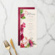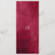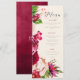 Une florale de roses aux tons bordeaux et crème est le point de mire de nombreuses pièces de cette suite mariage qui dispose également d'un texte élégant et d'aménagements design modernes. Le menu mariage présenté ici a une bordure latérale de roses et une belle aquarelle abstraite au verso dans la riche bordeaux et la prune. Entrez facilement les détails de votre menu personnel, la date du mariage et les initiales de la mariée et du marié à l'aide du modèle fourni. Cherchez ID584 pour voir toutes les pièces correspondantes dans ce bel ensemble de mariages.