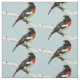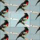 This animal fabric design features the male Rose-breasted Grosbeak, a striking bird with a brilliant rose breast contrasted by black and white feathers and a strong blocky beak. He is a songbird with a wonderful melody. The female is brown and white. They breed in cool temperate North America, migrating to tropical America in winter. He is set on a pale blue background. You can easily customize the background colour to suit your special project.
