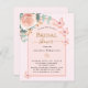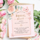 A rose gold background with a rose gold and pink arch. Decorated with a rose gold and blush pink floral, rose flower, green watercolored eucalyptus greenery and butterflies. Personalize and add the name of the bride to be and party details.