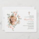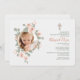 A lovely white invitation with a crescent of light pink roses gracing a circular photo window. The featured cross can be dragged to any location, made large or smaller or eliminated. (<a href='http://www.freepik.com/free-vector/wedding-invitation-with-floral-circle_1343276.htm'>Designed by Freepik</a>). <br/><br/>The card is easy to customize with your wording, font andfont colour.<br/><br/>Not exactly what you're looking for? All our products can be custom designed to meet your needs at no extra charge.<br/><br/>Simply contact us at askcottonlamb@gmail.com.<br/><br/>Coordinating products available: Pink Rose Frame Thank You Cards<br/>Want something more? Just ask us!