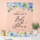 Bienvenue aux invités à votre événement avec ce panneau en acrylique de baby shower personnalisable. Il présente des guirlandes florales aquarelle de roses bleues, violettes et blanches, d'anémones et d'hydrangées. Personnalisez ce panneau de baby shower floral en ajoutant les détails de votre événement. Ce panneau d'accueil de baby shower d'hydrangea est parfait pour les baby showers de printemps et d'hiver.