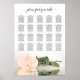 Cet élégant tableau de 20 places mariage dispose d'un beau rose couleur pêche pâle orange ou clair reflétant dans l'eau avec des vagues et des ondulations. Le titre dit "s'il vous plaît trouvez votre table" dans la calligraphie de script dentée. Il y a de la place pour les noms du couple et la date du mariage. Ce graphique a des affectations de table pour 200 invités - 10 personnes par table.