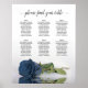 Cet élégant tableau de sièges de mariage a assigné des tables pour 60 invités à dix personnes par table. Il dispose d'une belle conception avec un rose en acier poussiéreux ou bleu étain reflétant dans l'eau avec des vagues et des ondulations. Le titre de calligraphie du script lacy dit "s'il vous plaît trouvez votre table" Il y a de l'espace pour les noms du couple mariage ainsi que la date du mariage.