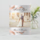 Un carte photo de Merci mariage moderne. Un arrière - plan à l'aspect faux argenté décoré de veines roses en marbre doré. Personnalisez et ajoutez votre photo et merci note. Retour : Ajoutez l'URL de votre site mariage au code QR pour plus de photos.