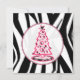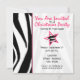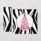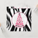 Une invitation comportant un arrière - plan de copie de zèbre sur l'avant et le dos. L'avant comporte une illustration d'un arbre de Noël avec un modèle de couleurs rose. L'arbre inclut les lumières et les ornements roses d'impression de zèbre avec la jupe et l'étoile assorties d'arbre. L'illustration est cadre pur formé par cercle intérieur garni du rose. Personnalisez le bord opposé avec des détails de votre événement. Caractéristiques illustration latérale pure de section et d'étoile.