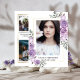 Simply elegant boho watercolor lavender rose floral gold frames four photo collage graduation announcement design by Holiday Hearts Designs. Template placeholder photos courtesy Unsplash.