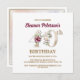 Organize the perfect 40th birthday celebration with this elegant rose floral monogram E design featured on the reverse side for birthday girls’ names starting with the letter E. Elegant floral numerals are used within the invitation to accentuate the celebratory age.