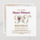 Organize the perfect 90th birthday celebration with this elegant rose floral monogram E design featured on the reverse side for birthday girls’ names starting with the letter E. Elegant floral numerals are used within the invitation to accentuate the celebratory age.