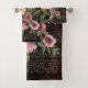 Trouvez cette belle SERVIETTE FLORALE ROSE AQUATIQUE SET sur un arrière - plan noir foncé aux tons vert et rose. Ces belles serviettes avec des fleurs roses soigneusement travaillées et un arrière - plan foncé seront un grand et pratique ajout à votre salle de bain. Ce kit de serviettes de bain serait un grand cadeau et vous pouvez le personnaliser en mettant à jour le monogramme. Vous trouverez d'autres produits avec des designs très similaires dans notre collection Vintage Pink Flowers on Black.