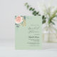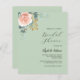 A sage green background. Decorated with a rose gold and blush pink floral, rose flower and green watercolored eucalyptus leaves, sprigs, greenery and a faux gold sprig. Personalize and add the name of the bride to be and party details.