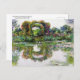 A fine art postcard with the painting, Rose Flowered Arches, Giverny (c. 1913) by Claude Monet (1840-1926). A French Impressionist artist. A still life of a flower garden with an arch of red roses next to a pond with pink water lilies in the foreground.