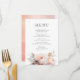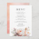 Introducing the romantic menu card that will elevate your dream party decor! This floral botanical pink and peach menu card is the perfect addition to any event or theme, infusing your table with a touch of natural elegance and grace. Make your occasion truly unforgettable with this elegant menu card that will take your guests on a journey of enchantment and wonder!