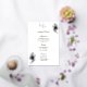 This wedding menu card is shown in an elegant white and silver foil rose print, script and standard text in a black colour.