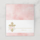Made to match the rest of our Rose Garden collection, these tent tags are adorned with a gold cross with roses on the front with gold lines to write in guests' names and table numbers. The backing has a soft watercolor pink to match.