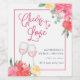Bridal shower wine labels for your favours or table wine feature vibrantly coloured watercolor flowers with two clinking glasses of rosé. "Cheers to Love" appears in pink handwritten script lettering along with three custom text fields for the event name, date and wine varietal or your personal message.