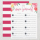 Conçue pour aller avec nos invitations de mariage en forme de dégustation de vin de Rosé Garden, les cartes présentent des fleurs aquarelles vibrantes avec deux verres à vin qui s'entrechoquent en haut et "carte de notation de vin" en écriture manuscrite rose. Espace en dessous pour les notes de dégustation et les évaluations sur huit vins.