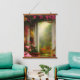 The polyester fabric displayed many wrinkles and several sharp creases throughout. At the bottom of the tapestry, I noticed a bulge in the fabric because it was not pulled tight enough before being connected to the wooden boards. It took me over an hour to spay water on the tapestry before putting it on an ironing board where I used a warm iron over a polyester cloth to remove the wrinkles and creases in the material. I was able to get out the wrinkles and creases that made that tapestry look as beautiful as its picture.