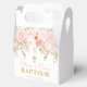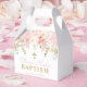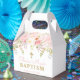 A simple and delicate gable favour box for your little girl's baptism with watercolor pink floral blooms, roses, and a gold cross. Easily change the information for any event. Great for favours, trinkets, or other party keepsakes.