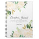 A personalized Christian Scripture journal featuring 2 beautiful corner arrangements of ivory and cream watercolor roses and green leaves, with a touch of faux glitter. The phrase "Scripture Journal " in dark grey hand lettered font is in the middle, with the Bible verse “The grass withers, the flower fades, But the word of our God stands forever.” Isaiah 40:8 NKJV underneath (which can be changed). Personalized by adding a name.