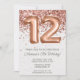 Rose Gold 12th Birthday Party Invitation and rose gold elegant modern 12th birthday party invitation for a 12 year old girl with modern script writing and fun foil balloons with printed texture paper background.