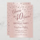 Elegant design with faux glitter rose gold and foil effect. Sparkly glitter diamonds confetti and stylish script font invite card. Glam blush pink and white. Cheers to 40 Years! Please message me if you need further customization.