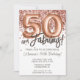 Rose Gold 50th Birthday Party Invitation and rose gold elegant modern 50 and fabulous with modern script writing and fun foil balloons.
