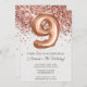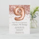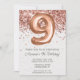 Rose Gold 9th Birthday Party Invitation et rose or élégant moderne 9th anniversaire invitation pour une fille de 9 ans avec écriture de script moderne et des ballons de papier à papier imprimé.