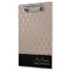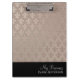 Elegant classy personalized metallic pink fleur de lis pattern and black clipboard with a glitter and grunge look.