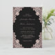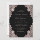 These elegant rose gold and black wedding invitations featuring rose gold floral lace on a black background are perfect for inviting your guests to your black and rose gold rustic wedding party.