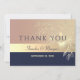 Simple, elegant, modern, calligraphy rose gold and navy blue wedding thank you card, with sophisticated floral gold lace and text template at the back.