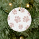 Rose Gold And White Dog Paw Pattern Ceramic Ornament