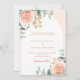 An elegant wedding invitation. A rose gold background, and a white coloured arch. Decorated with watercolored roses and eucalyptus greenery.