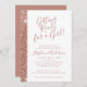 Rose Gold Pink Glitter Baby Girl Baby Shower Invitation with a fun and unique "Getting Ready for a Girl" wording in modern, minimalistic, and chic trendy script font with sans-serif invitation text for a glitzy and chic classy and elegant baby shower. See the Paper Grape Zazzle Designer shop for coordinating party paper goods, party decor, and gifts.