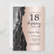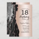 Black and rose gold agate 18th birthday party invitation. Elegant modern design featuring rock stone agate marble geode background, faux glitter rose gold and typography script font. Trendy invite card perfect for a stylish women's bday celebration. Printed Zazzle invitations or instant download digital printable template.