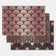 Stylish trio of wrapping paper sheets features three different rose gold and black Art Deco geometric designs.