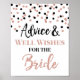 Advice and well wishes for the bride sign for bridal shower in a black and rose gold confetti pattern.