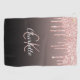 A black, brown, caffe latte gradient background decorated with rose gold faux glitter drips, paint dripping look. Personalize and add a name, your monogram initials. The name is written with a hand lettered style script.