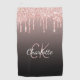 Rose gold black glitter drips monogram name golf towel