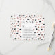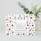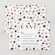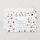 An original, modern faux rose gold foil and black watercolor hand drawn polka dots rsvp wedding card on a white customizable background. Perfect for elegant, chic and modern wedding themes