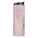 A rose gold faux metallic looking background with elegant rose gold, pink faux glitter drips, paint drip look. Dark rose gold coloured text. Personalize and add your monogram initials and your name.
