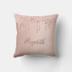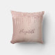 Rose gold blush glitter drips name throw pillow