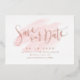 Hand lettered save the date script in real rose gold foil on blush pink watercolor background, elegant and stylish, great modern simple personalized save the date cards.