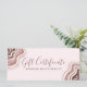 Rose Gold Blush Pink Glitter Agate Geode Luxe Chic Business Gift Certificate. Perfect for a beauty salon, hair stylist, makeup artist, or cosmetologist.