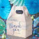 Elegant Rose gold, blush pink and teal personalized mini gable favour boxes for a fun and girly pink topical beach theme or luau birthday party. The text and colours and fonts are editable, making them perfect for a little girl's 1st 5th, or 8th birthday, or a big girl's 13th 15th sweet 16th, 18th or 21st birthday or graduation. The "thank you for being here" birthday favour box is perfect for a fabulous 30 40 50 60 80 or 90th birthday party too.