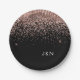 Rose Gold Blush Pink Black Glitter Monogram Paper Plate