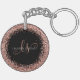Rose Gold Blush Pink Glitter Glam Monogram Name Keychain
