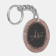 Glam Rose Gold Glitter Elegant Monogram Keychain. Easily personalize this trendy chic keychain design featuring elegant rose gold sparkling glitter on a black background. The design features your handwritten script monogram with pretty swirls and your name.