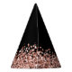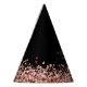 Glam Rose Gold Glitter Elegant Monogram Party Hat. Easily personalize this trendy chic party hat design featuring elegant rose gold sparkling glitter on a black background. The design features your handwritten script monogram with pretty swirls and your name.