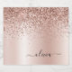 Rose Gold - Blush Pink Glitter Metal Monogram Name Beer Bottle Label